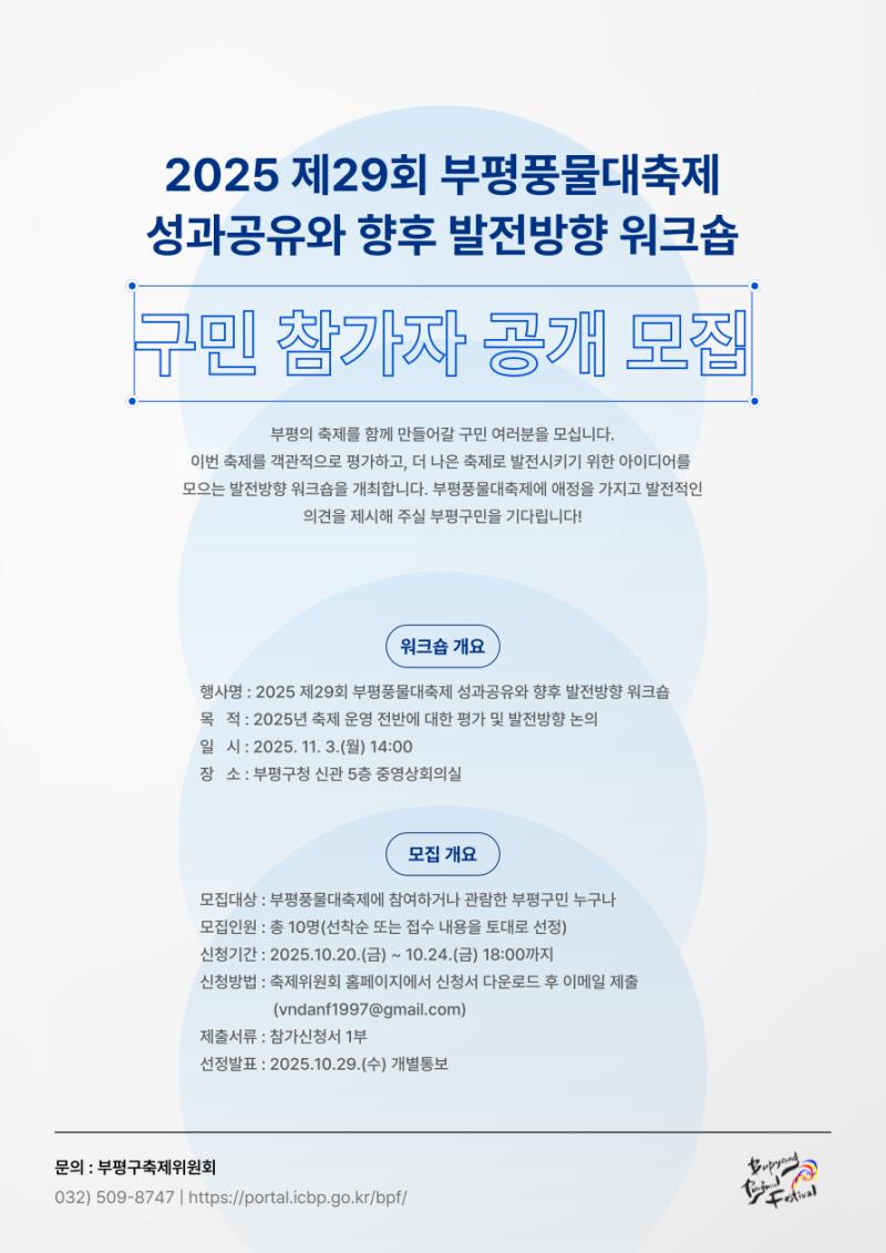 2025 제29회 부평풍물대축제 성과공유와 향후 발전방향 워크숍 구민 참가자 공개 모집