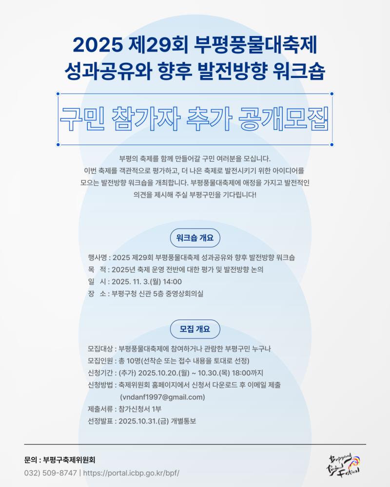 2025 제29회 부평풍물대축제 성과공유와 향후 발전방향 워크숍 구민 참가자 추가 공개 모집
