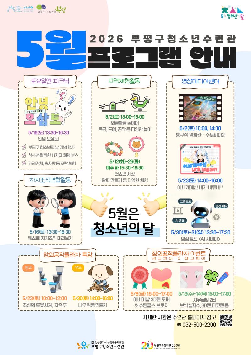 | [공지] [안내] 부평구청소년수련관 5월 프로그램 안내 | |||||