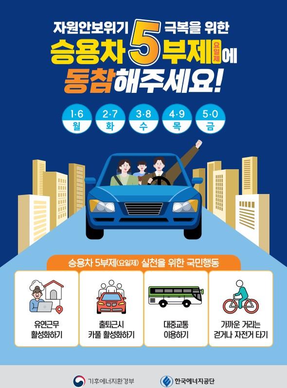○ 시행방법 : 차량번호 끝자리 번호로 운휴요일 지정하는 '끝번호 요일제' 시행