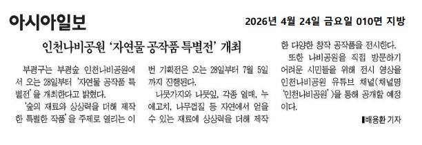[아시아일보-2026. 4. 24.] 인천나비공원 '자연물 공작품 특별전' 개최