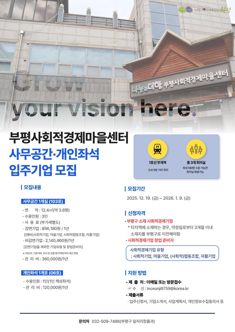 2026년 제1차 부평사회적경제마을센터 코워킹룸 입주기업 모집